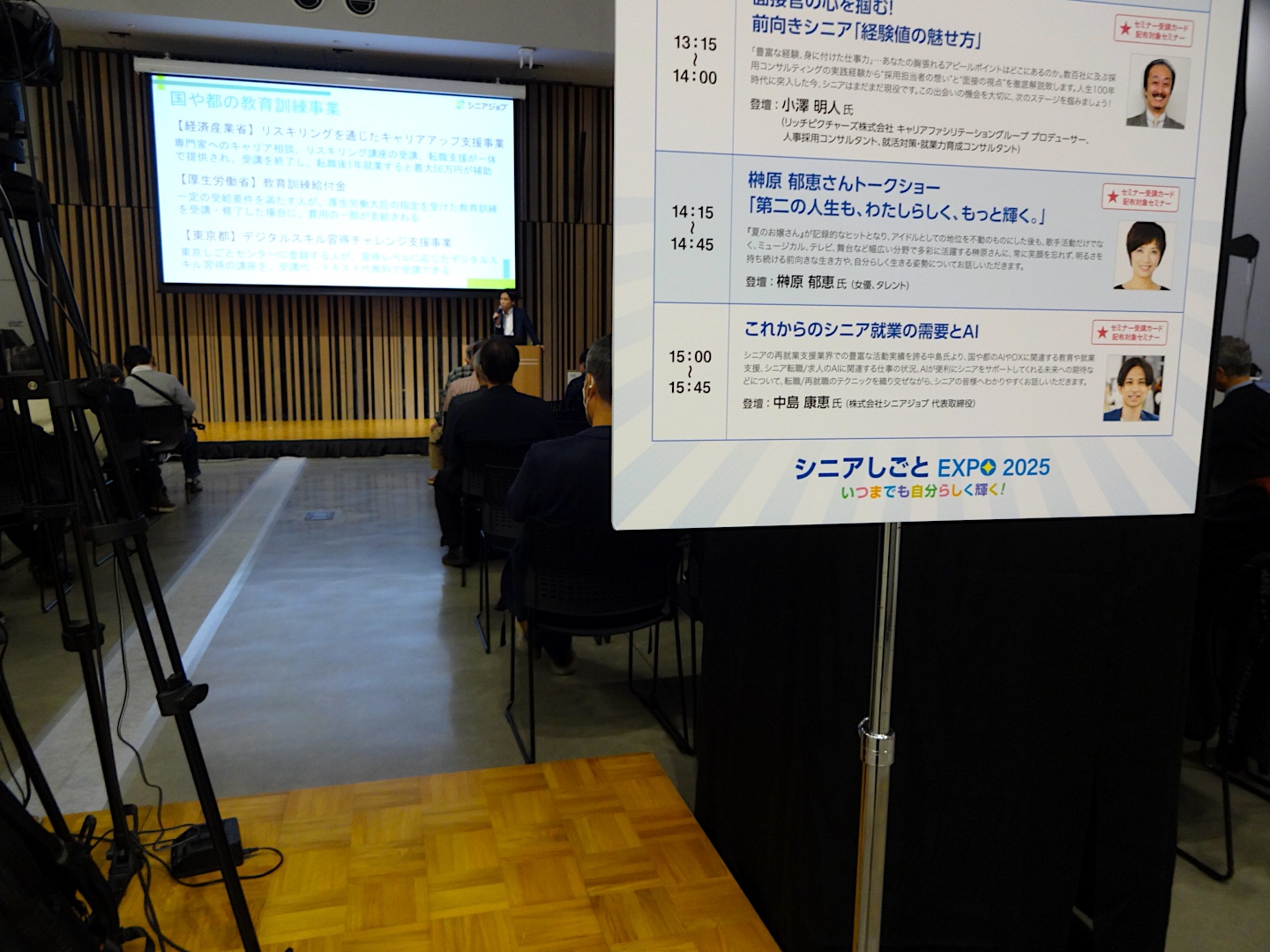 東京都が東京労働局等と連携して開催したイベント「シニアしごとEXPO2025」の10月21日の八王子会場のセミナーに、当社代表取締役の中島康恵が登壇しました。