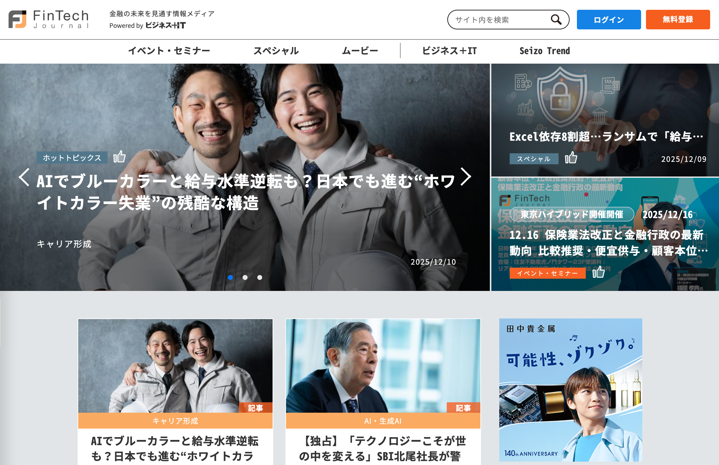 『AIでブルーカラーと給与水準逆転も?日本でも進む“ホワイトカラー失業”の残酷な構造』と題した、当社代表取締役 中島康恵執筆のコラム最新作が、ITと経営に関する情報メディアの『ビジネス+IT』、および系列の金融情報メディア『FinTech Journal』における中島の連載の一つとして2025年12月10日に公開されました。