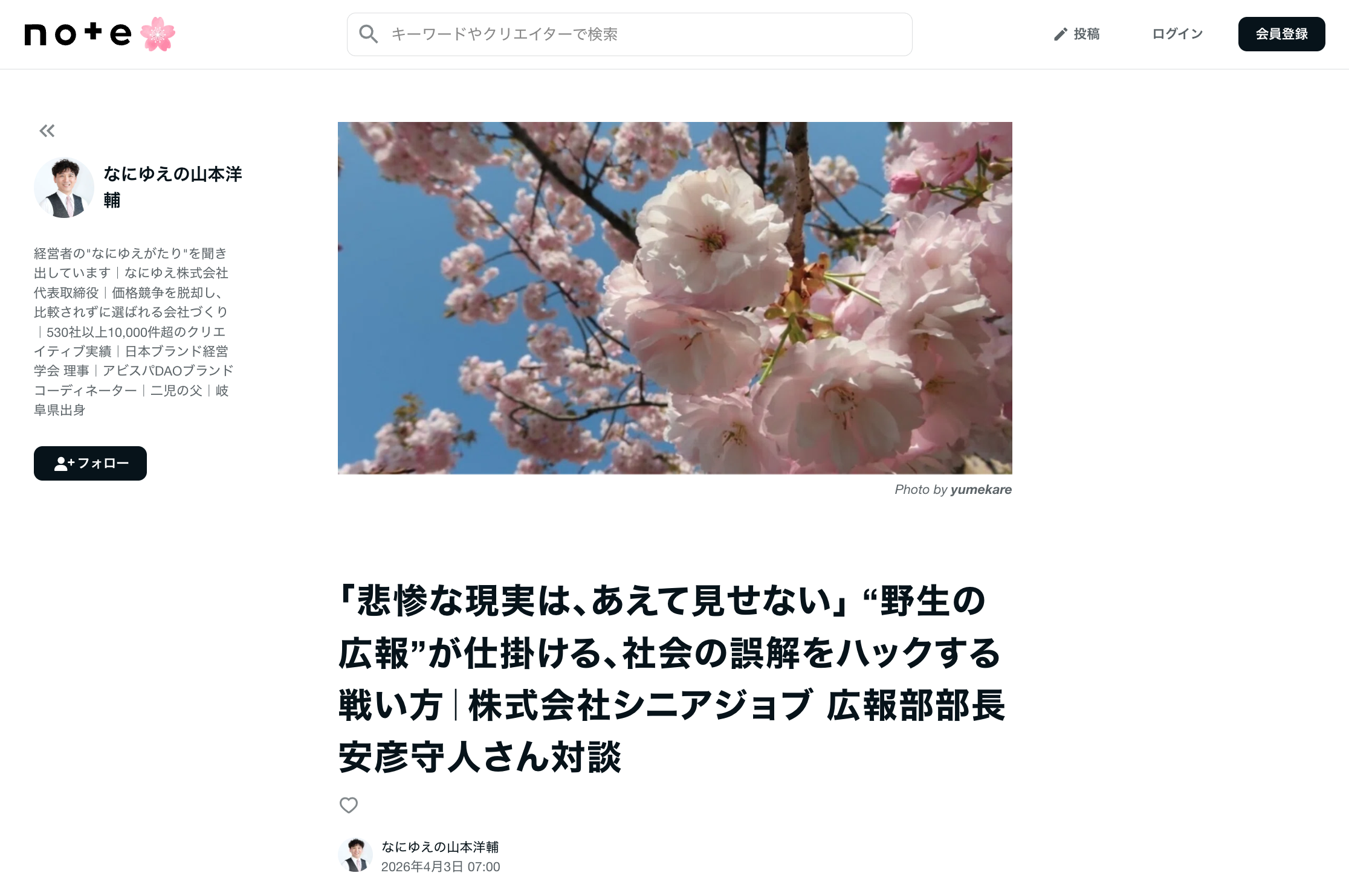 - 掲載媒体: YouTubeチャンネル「なにゆえがたり」、なにゆえ株式会社代表取締役・山本洋輔氏のnote
